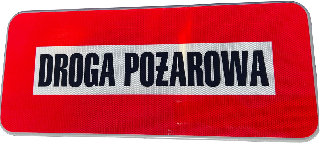 Znak „Droga pożarowa” 600x250 mm, 1 TYP (RA1) – wykonany w technologii znaków drogowych
